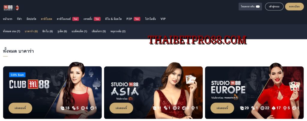 เขียนตำนานบทใหม่ของการเดิมพันไปกับ m88 คาสิโนสด ที่ที่ให้คุณได้ปลดปล่อยความตื่นเต้นเร้าใจและความสนุกแบบไร้ขีดจำกัด คุณจะได้พบกับเมนูเกมคาสิโนที่หลากหลาย ตอบโจทย์ทุกความต้องการ และเลือกเล่นได้อย่างจุใจ ทั้งยังได้ดื่มด่ำกับบรรยากาศเสมือนจริง ผ่านระบบถ่ายทอดสดแบบเรียลไทม์ในคาสิโนทั้ง 7 คลับ แต่ก่อนที่จะไปยกระดับความสนุกในการเดิมพันคาสิโนสดของคุณที่ M88 ทางเข้า เรามาสำรวจข้อมูลกันก่อนว่าที่นี่มีอะไรพิเศษให้คุณบ้าง